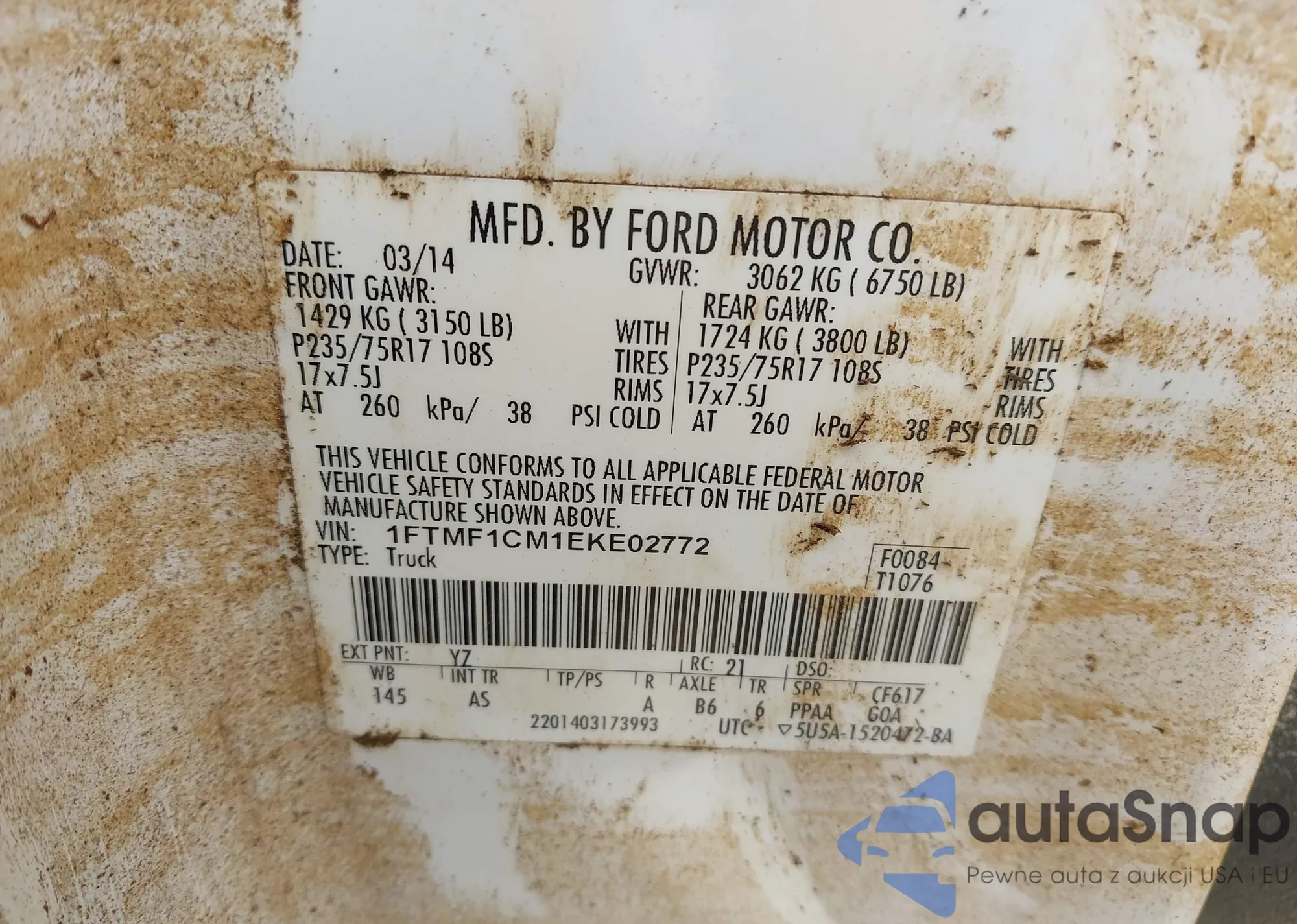 Samochód Ford F-150 2014 (VIN 1FTMF1CM1EKE02772) sprzedaje go niezweryfikowany sprzedawca. Zalecamy raport Carfax i potwierdzenie możliwości rejestracji pojazdu przed zakupem.