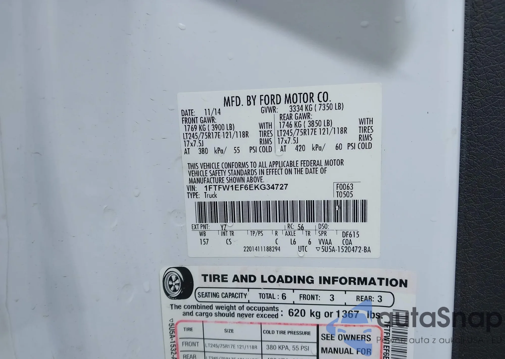Samochód Ford F-150 2014 (VIN 1FTFW1EF6EKG34727) nie był wcześniej licytowany. Dokumenty są czyste, przebieg odpowiada lub jest niższy niż średnia rynku. Sprzedaje go firma ubezpieczeniowa – polecamy zakup. Dostawa do portu zajmie ok. 6–8 tygodni.