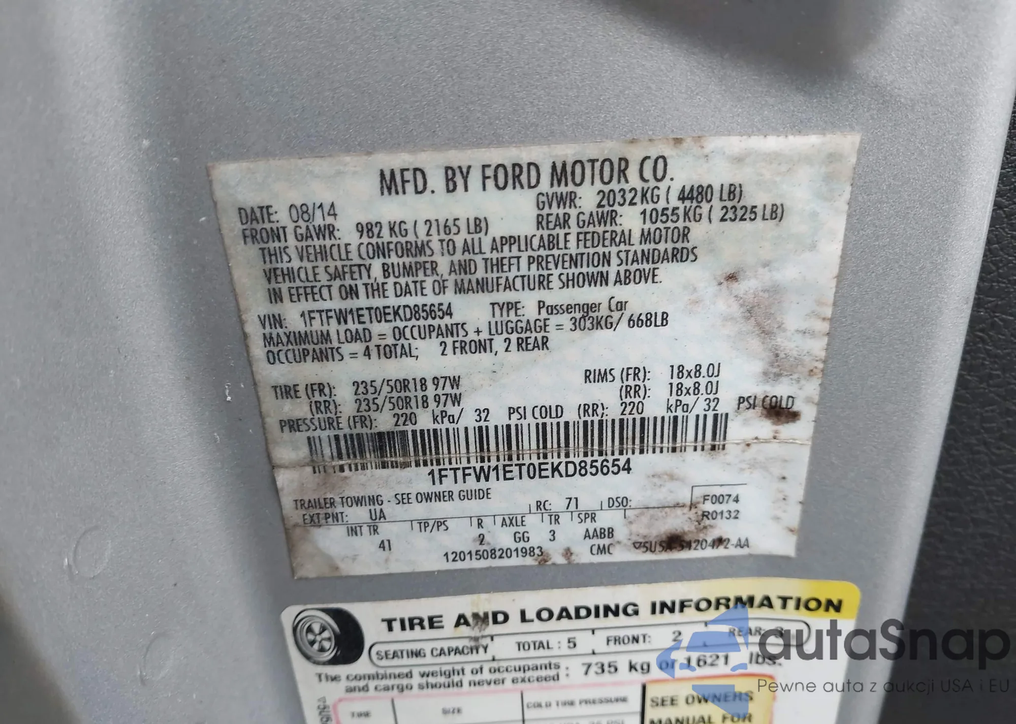 VIN: 1FTFW1ET0EKD85654
