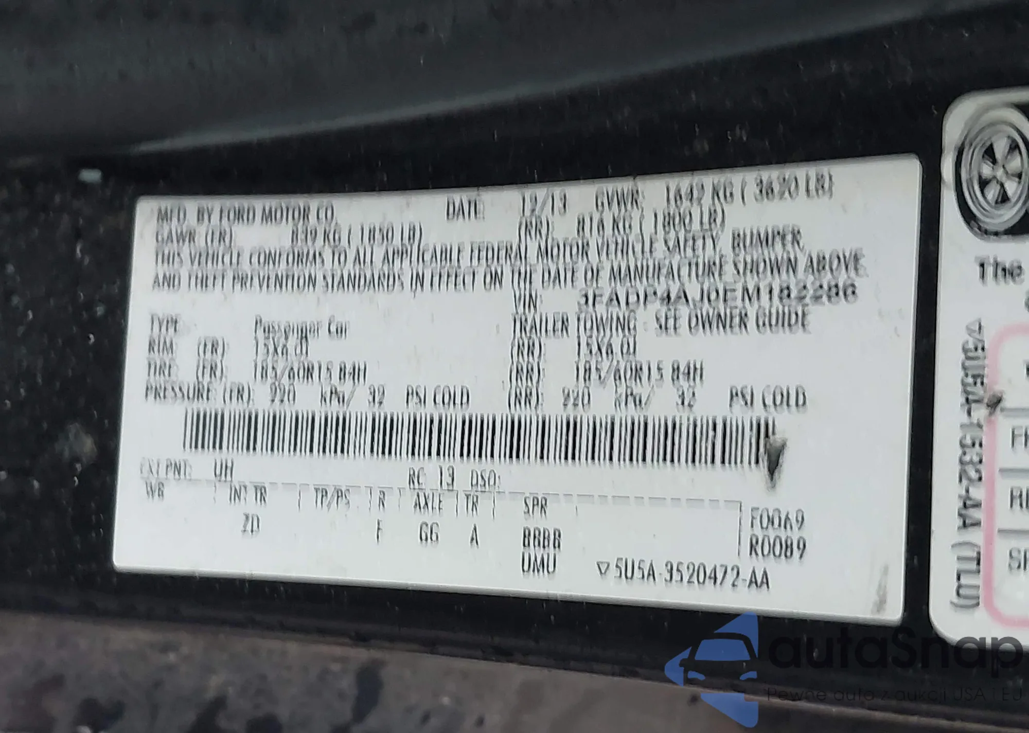 VIN: 3FADP4AJ0EM182286
