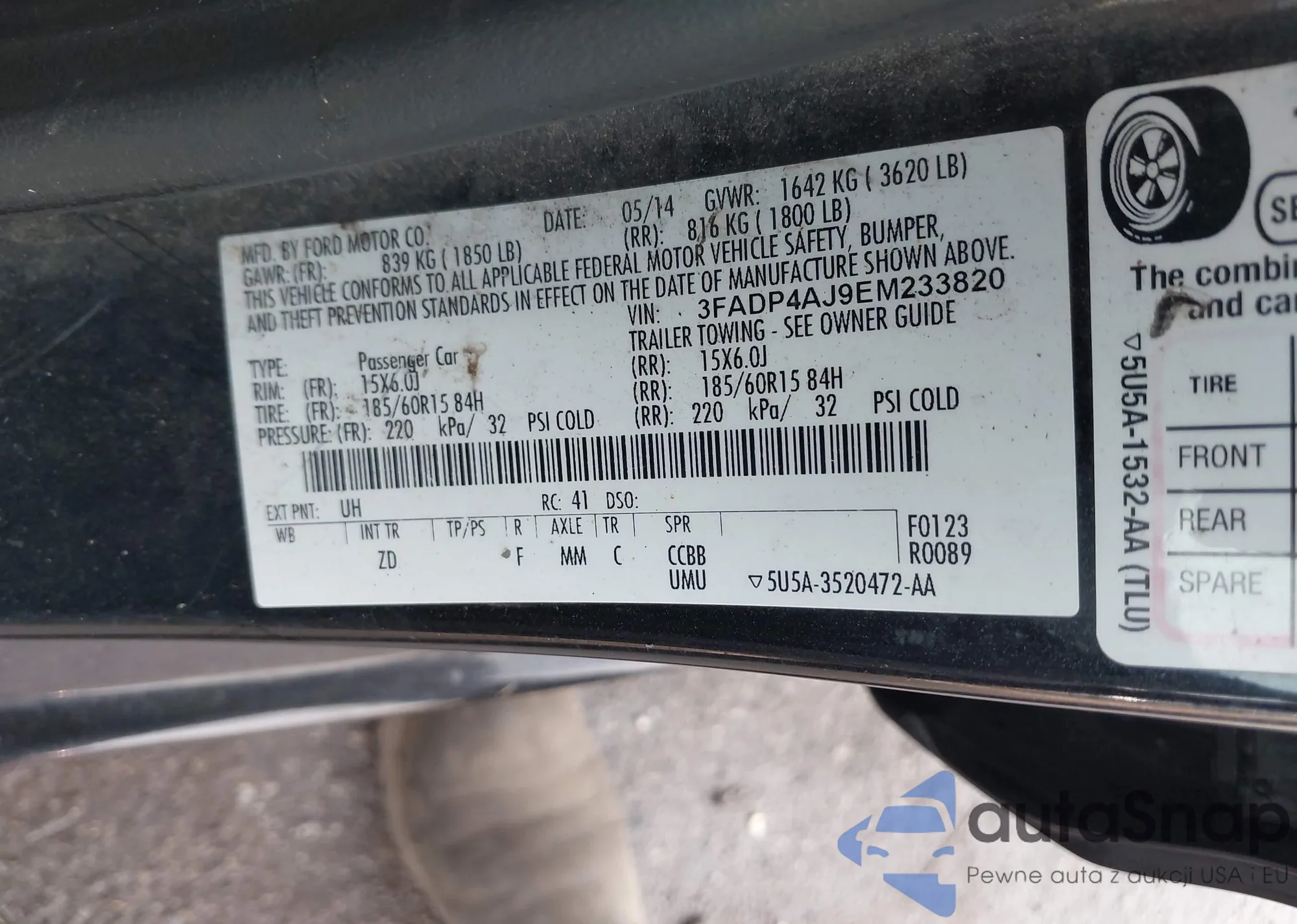 VIN: 3FADP4AJ9EM233820
