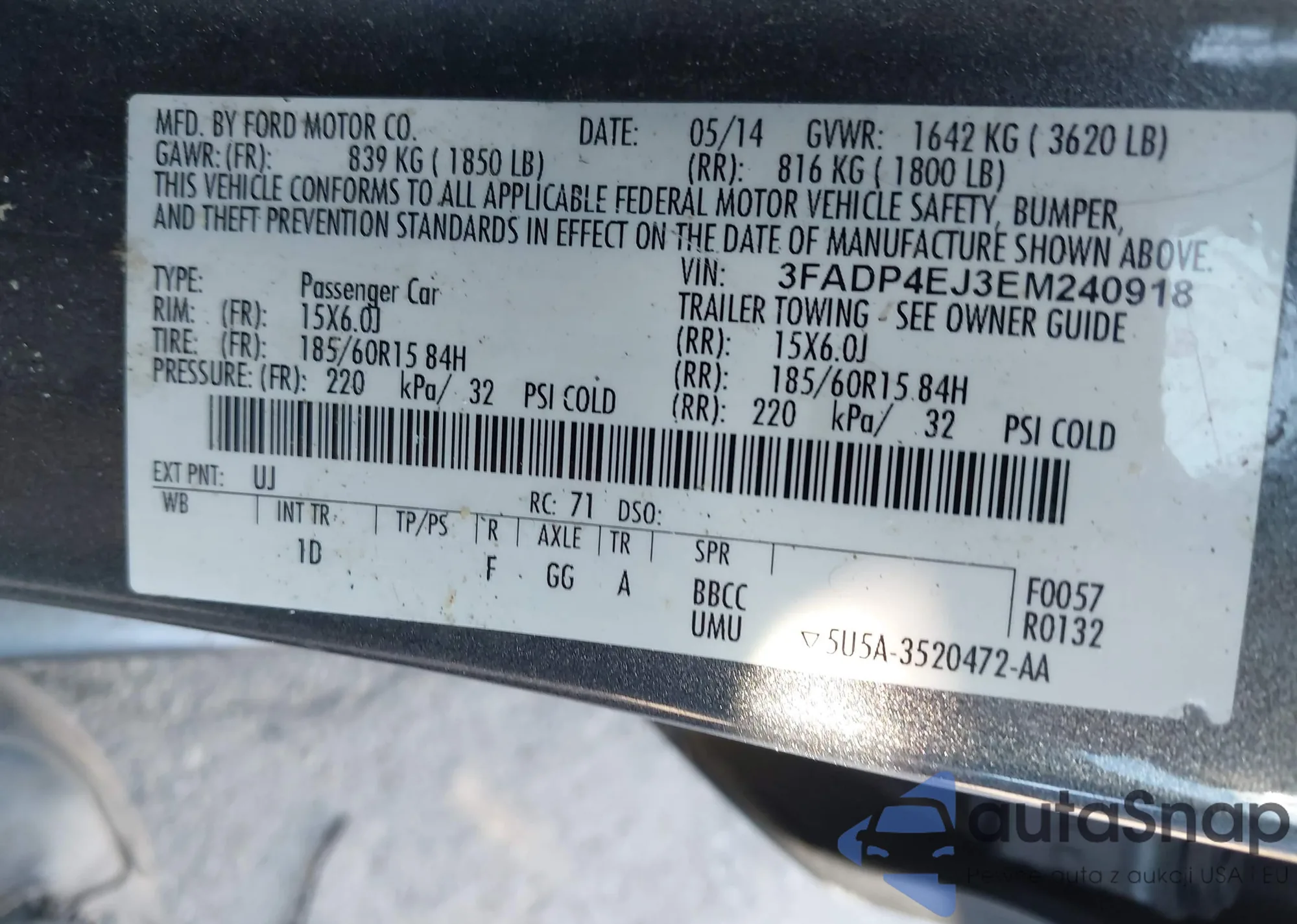 VIN: 3FADP4EJ3EM240918