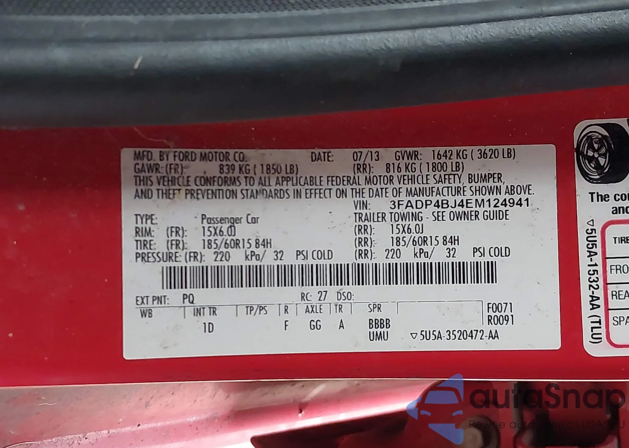 Samochód Ford Fiesta 2014 (VIN 3FADP4BJ4EM124941) nie był wcześniej licytowany. Dokumenty są czyste, przebieg odpowiada lub jest niższy niż średnia rynku. Sprzedaje go firma ubezpieczeniowa – polecamy zakup. Dostawa do portu zajmie ok. 6–8 tygodni.