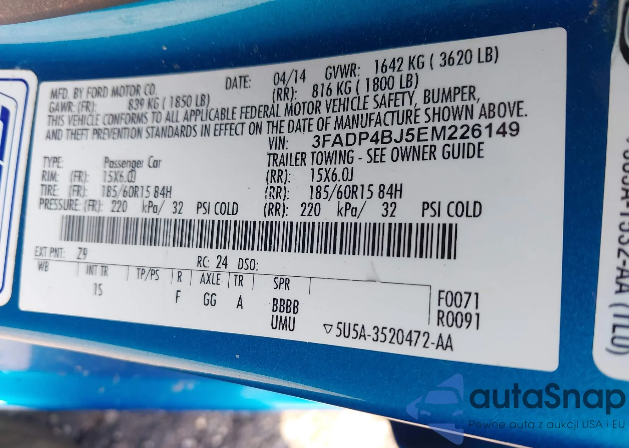 VIN: 3FADP4BJ5EM226149