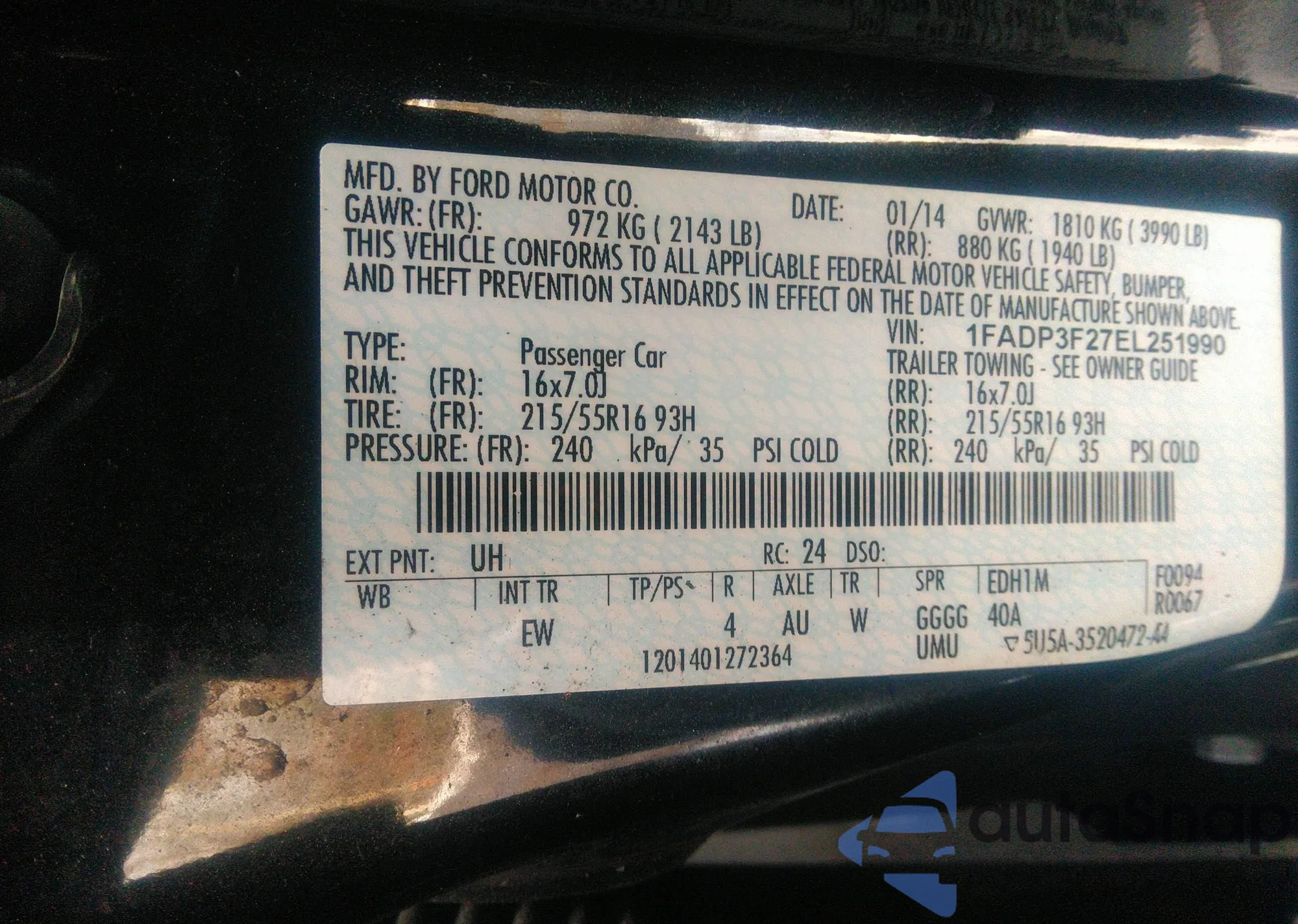 VIN: 1FADP3F27EL251990