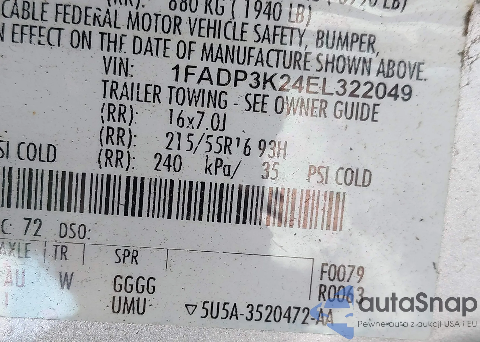 VIN: 1FADP3K24EL322049