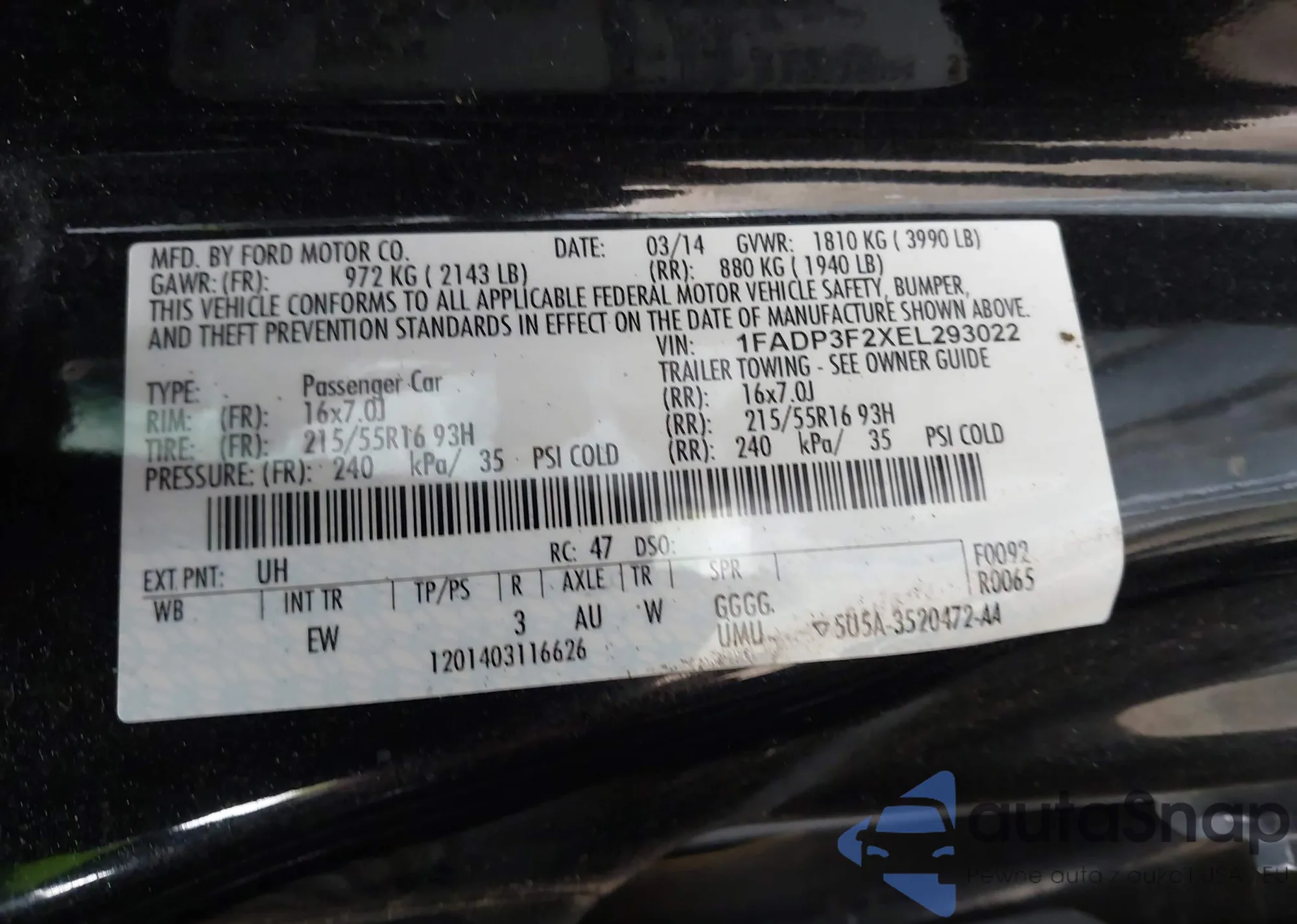 VIN: 1FADP3F2XEL293022