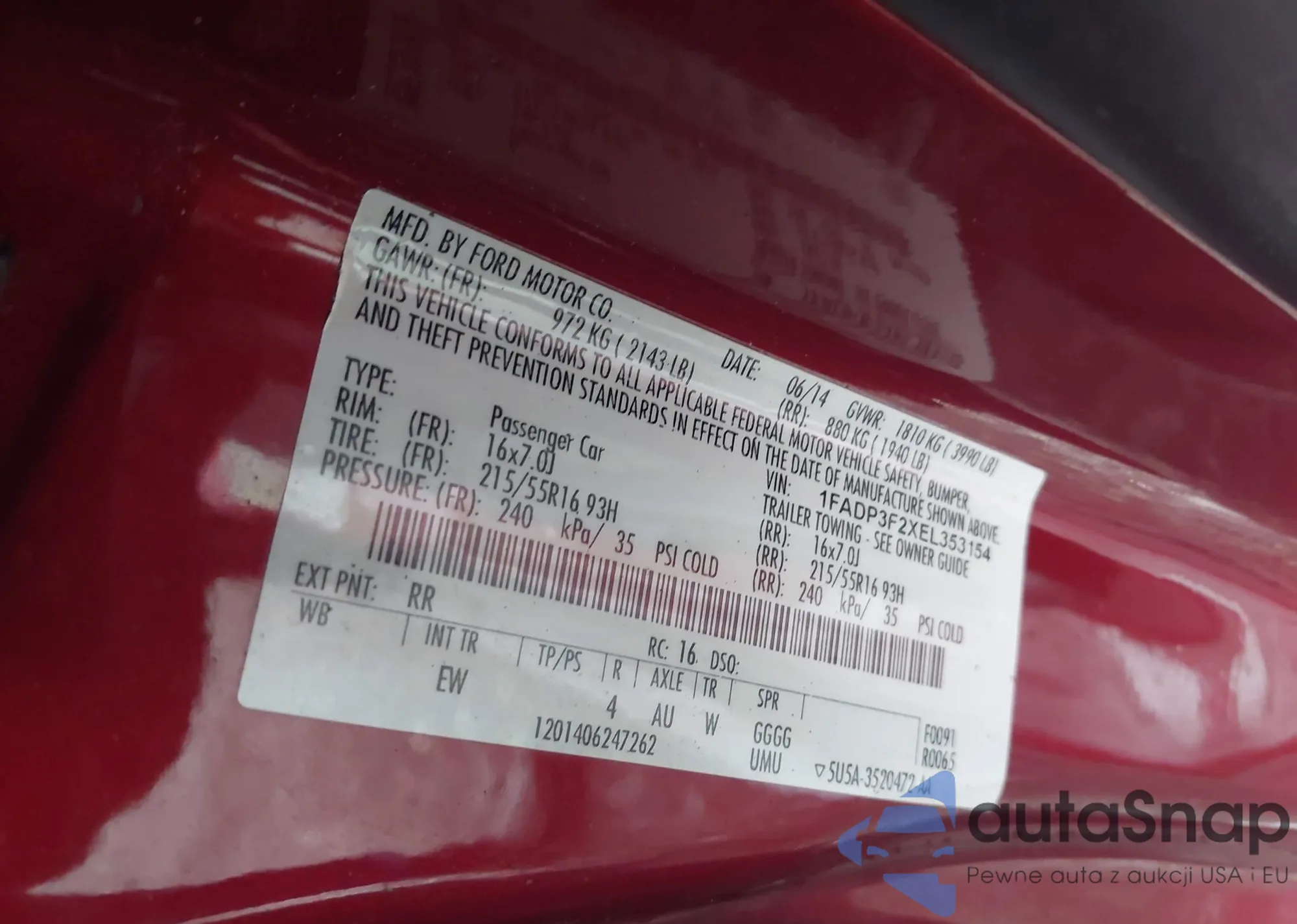 VIN: 1FADP3F2XEL353154