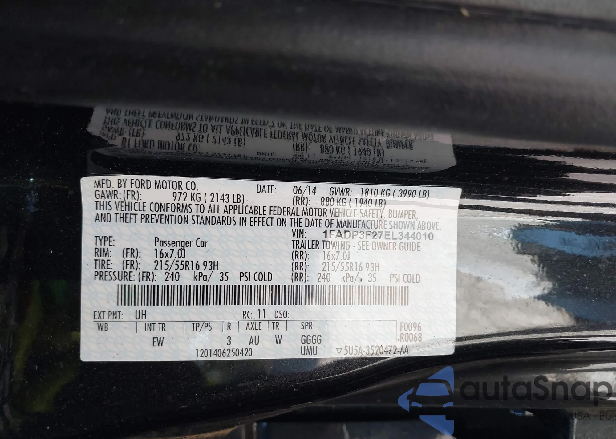 VIN: 1FADP3F27EL344010