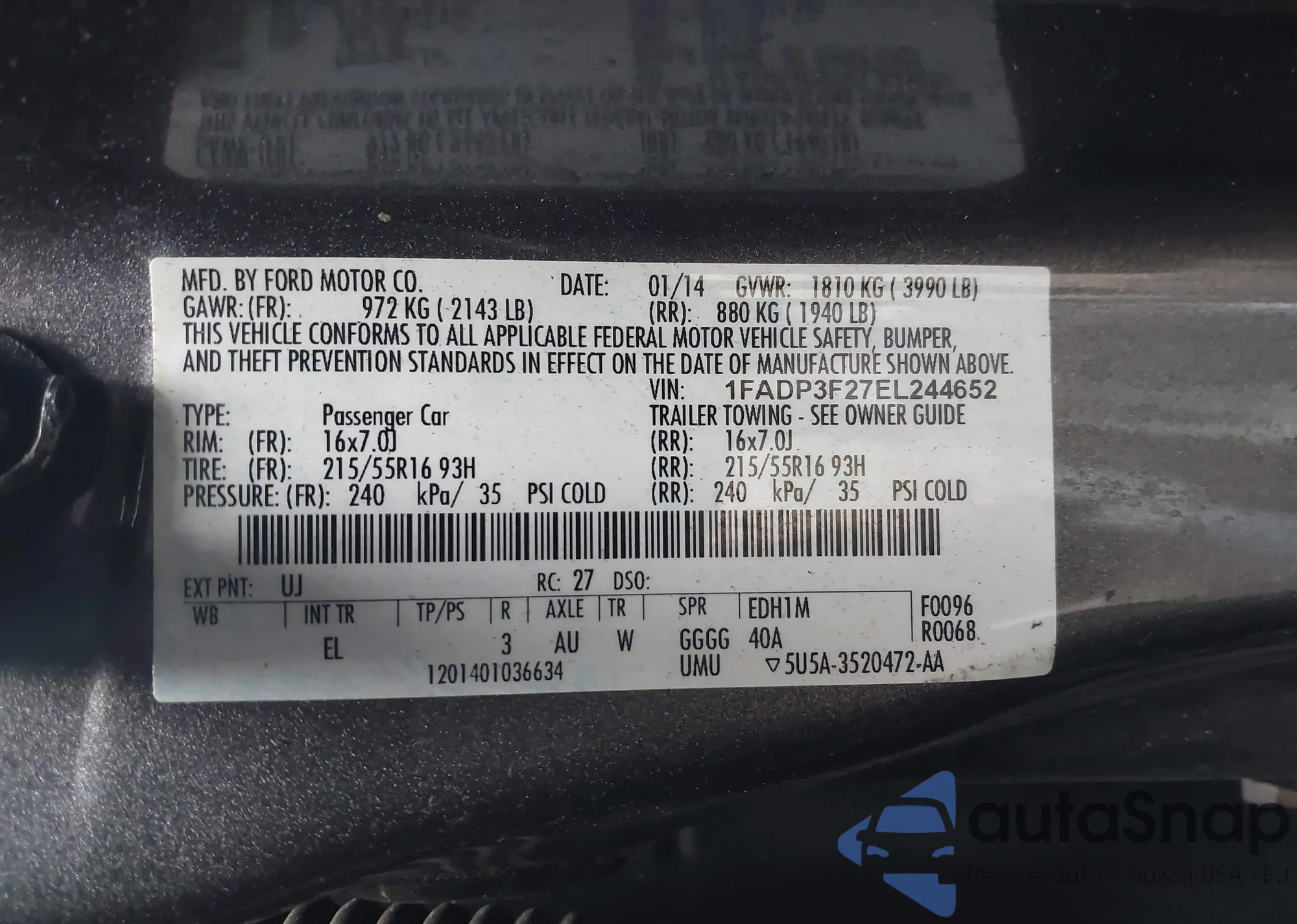 VIN: 1FADP3F27EL244652
