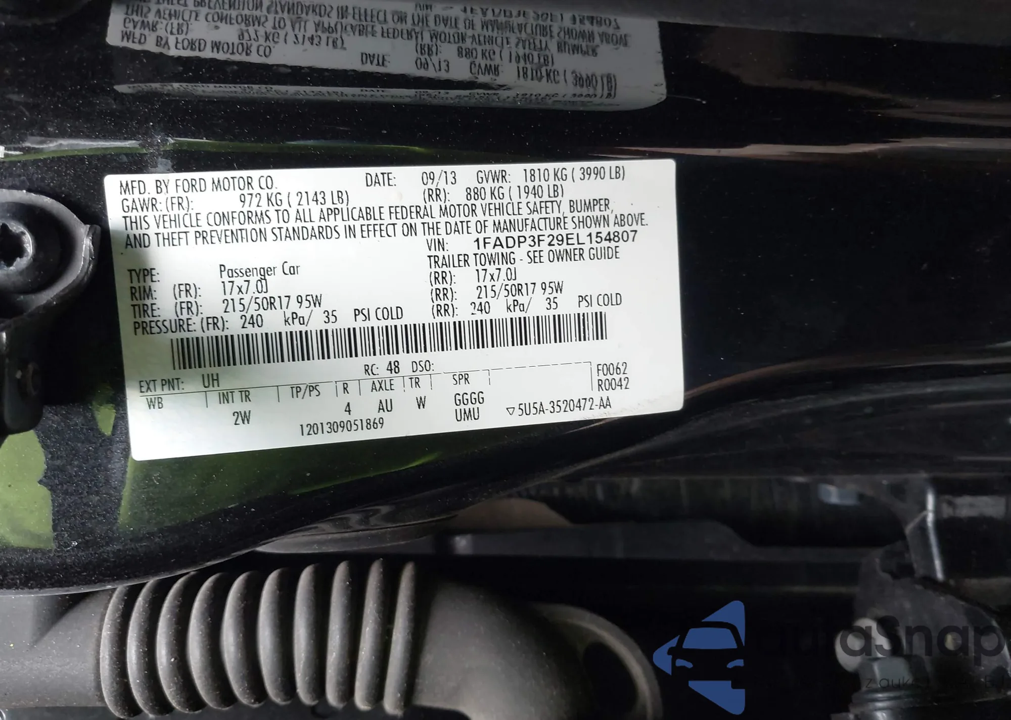 VIN: 1FADP3F29EL154807