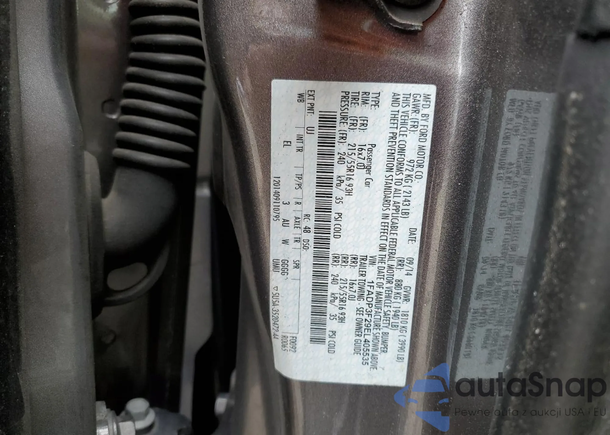 VIN: 1FADP3F29EL405535