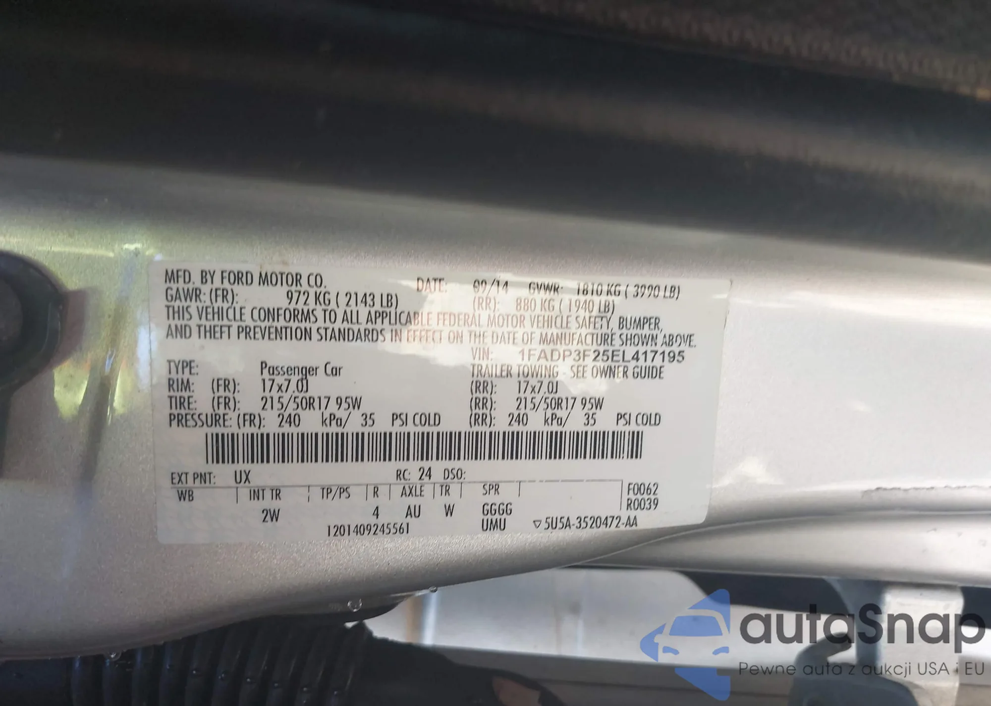 VIN: 1FADP3F25EL417195