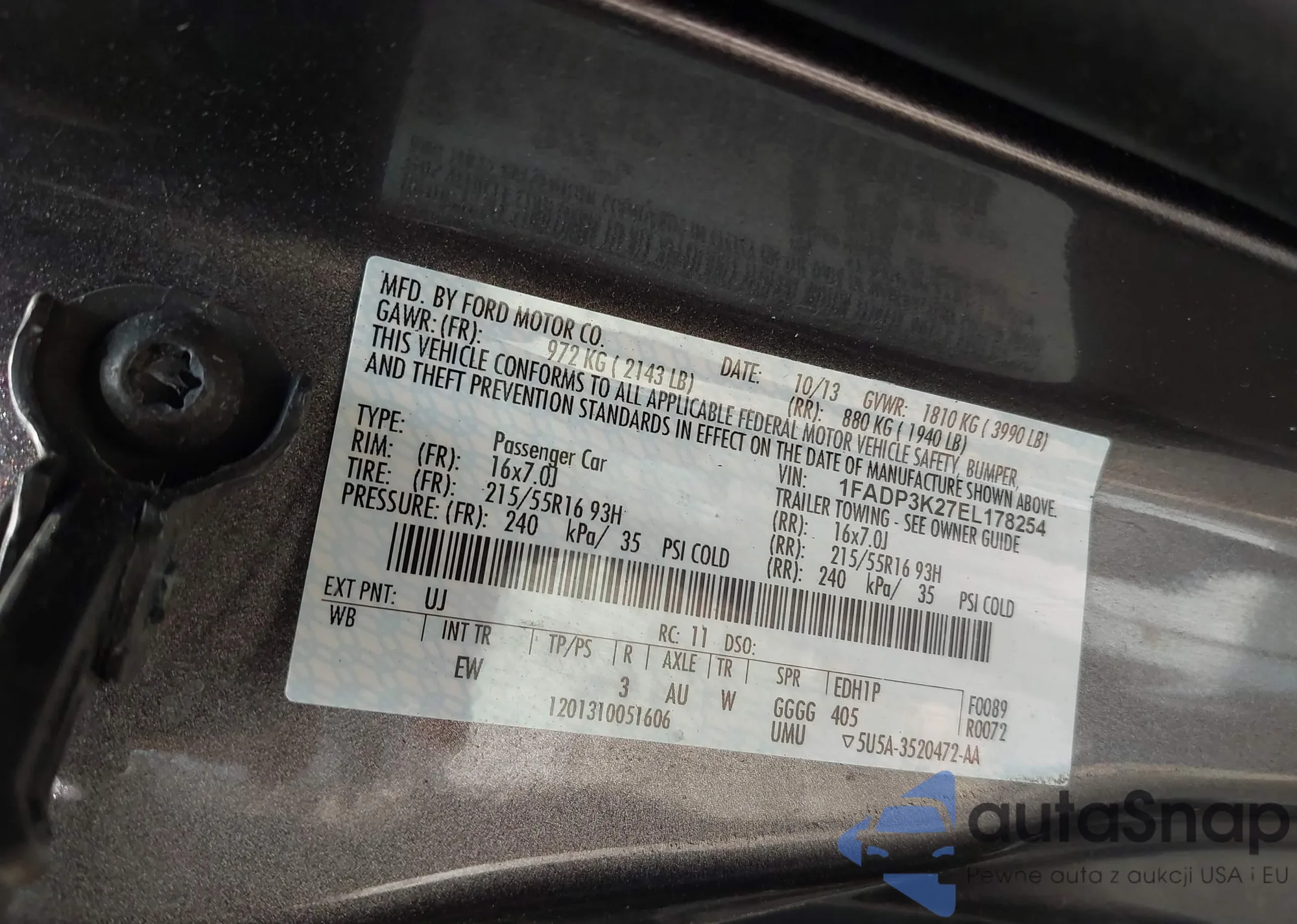 VIN: 1FADP3K27EL178254
