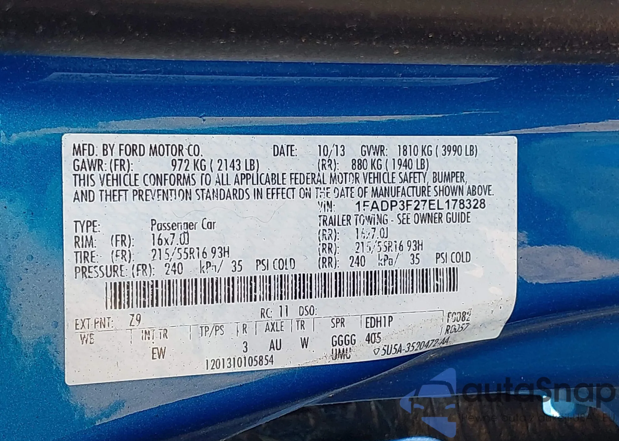 VIN: 1FADP3F27EL178328