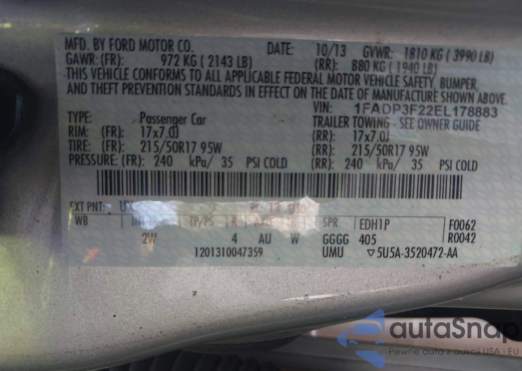 VIN: 1FADP3F22EL178883