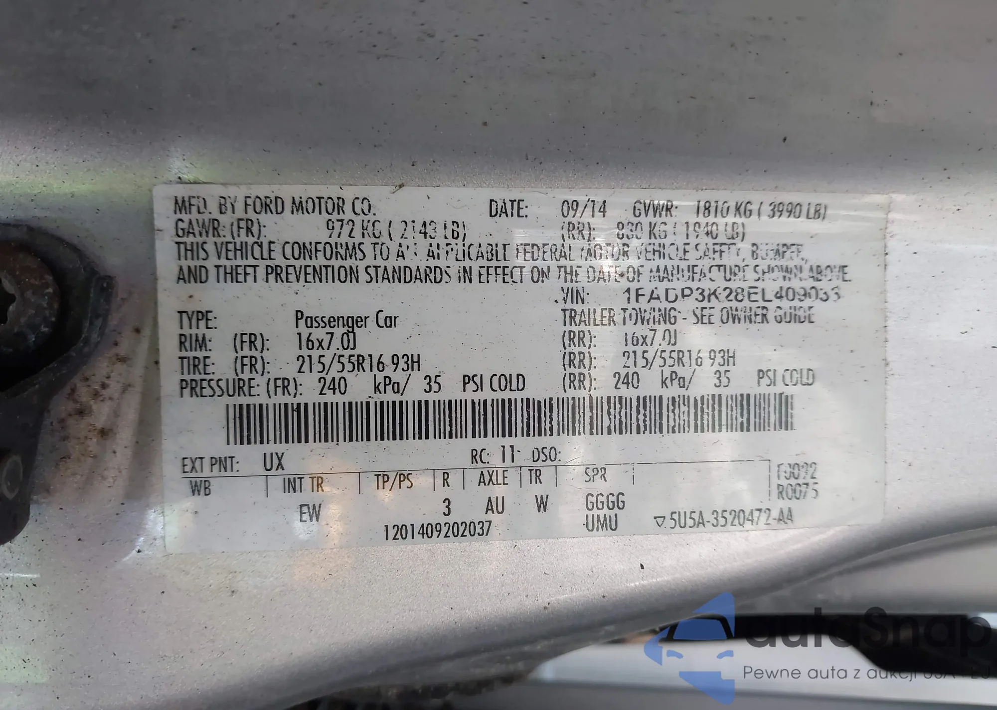VIN: 1FADP3K28EL409033