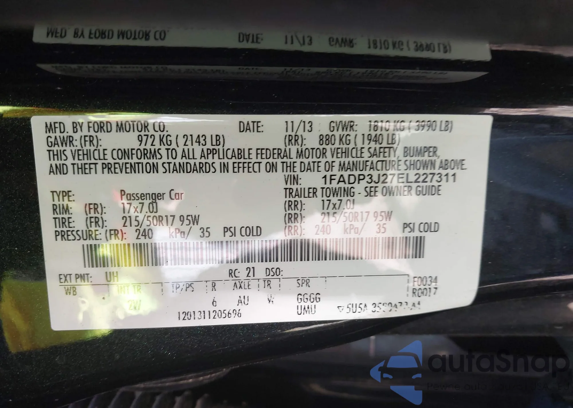 VIN: 1FADP3J27EL227311