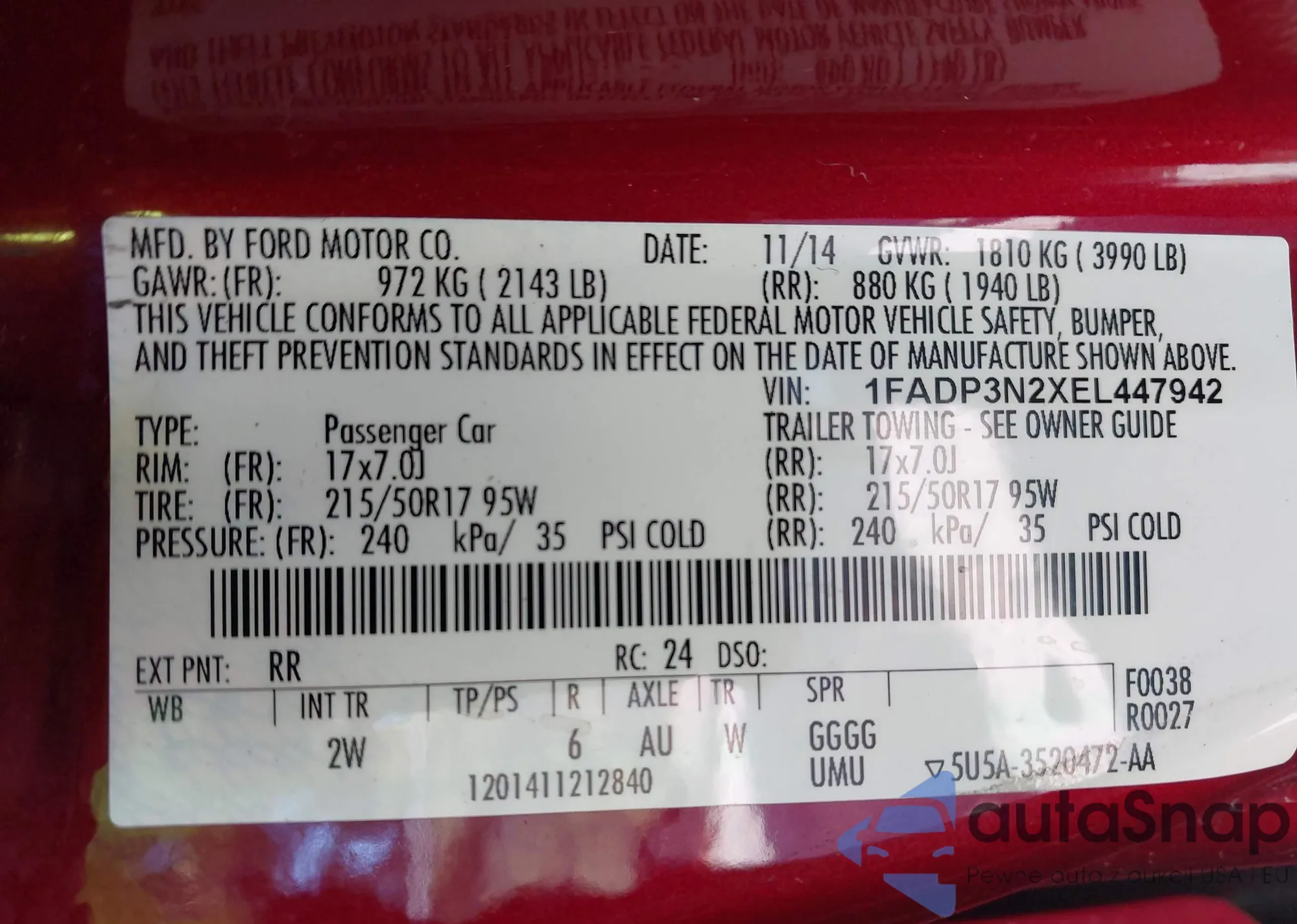 VIN: 1FADP3N2XEL447942