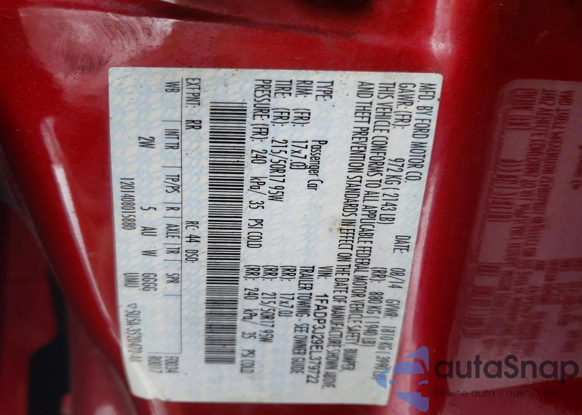 VIN: 1FADP3J29EL379722
