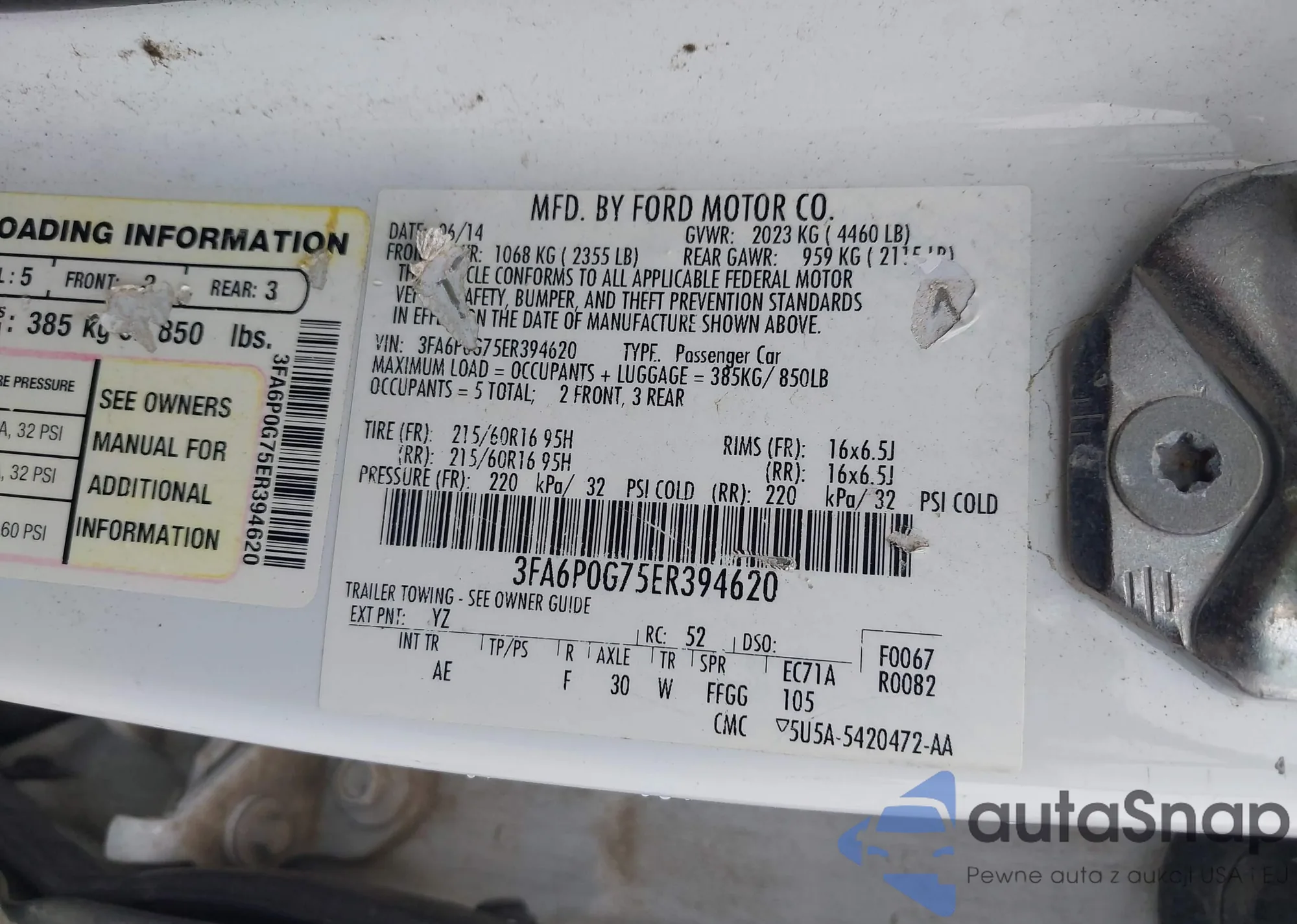 VIN: 3FA6P0G75ER394620