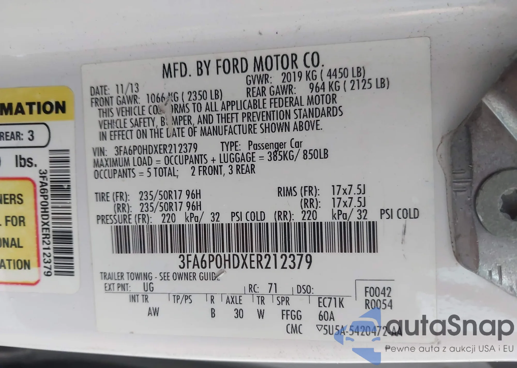 VIN: 3FA6P0HDXER212379