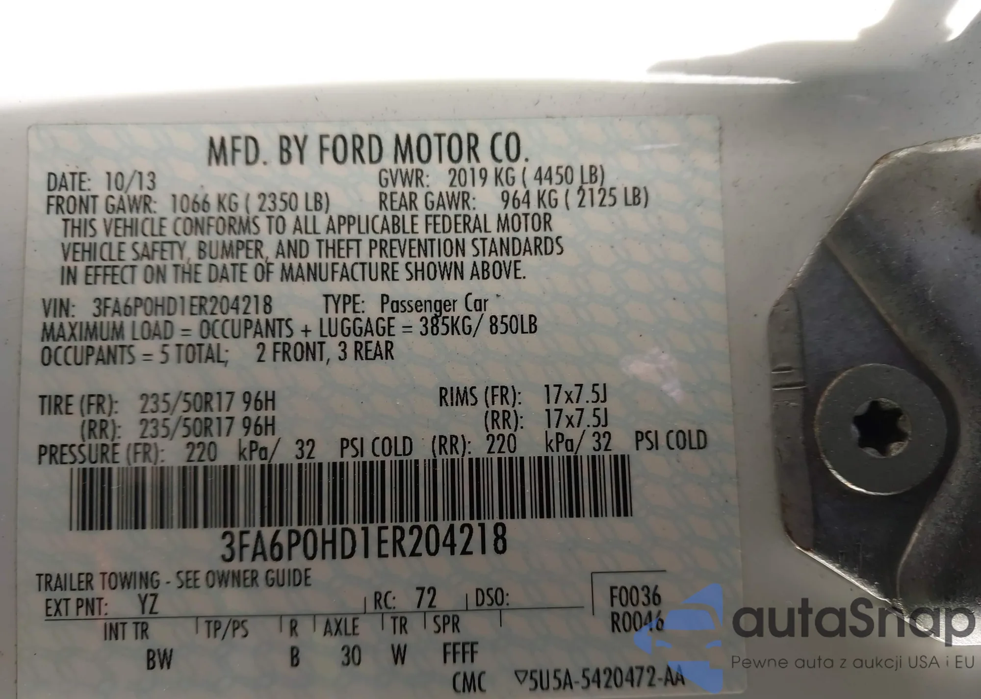 VIN: 3FA6P0HD1ER204218