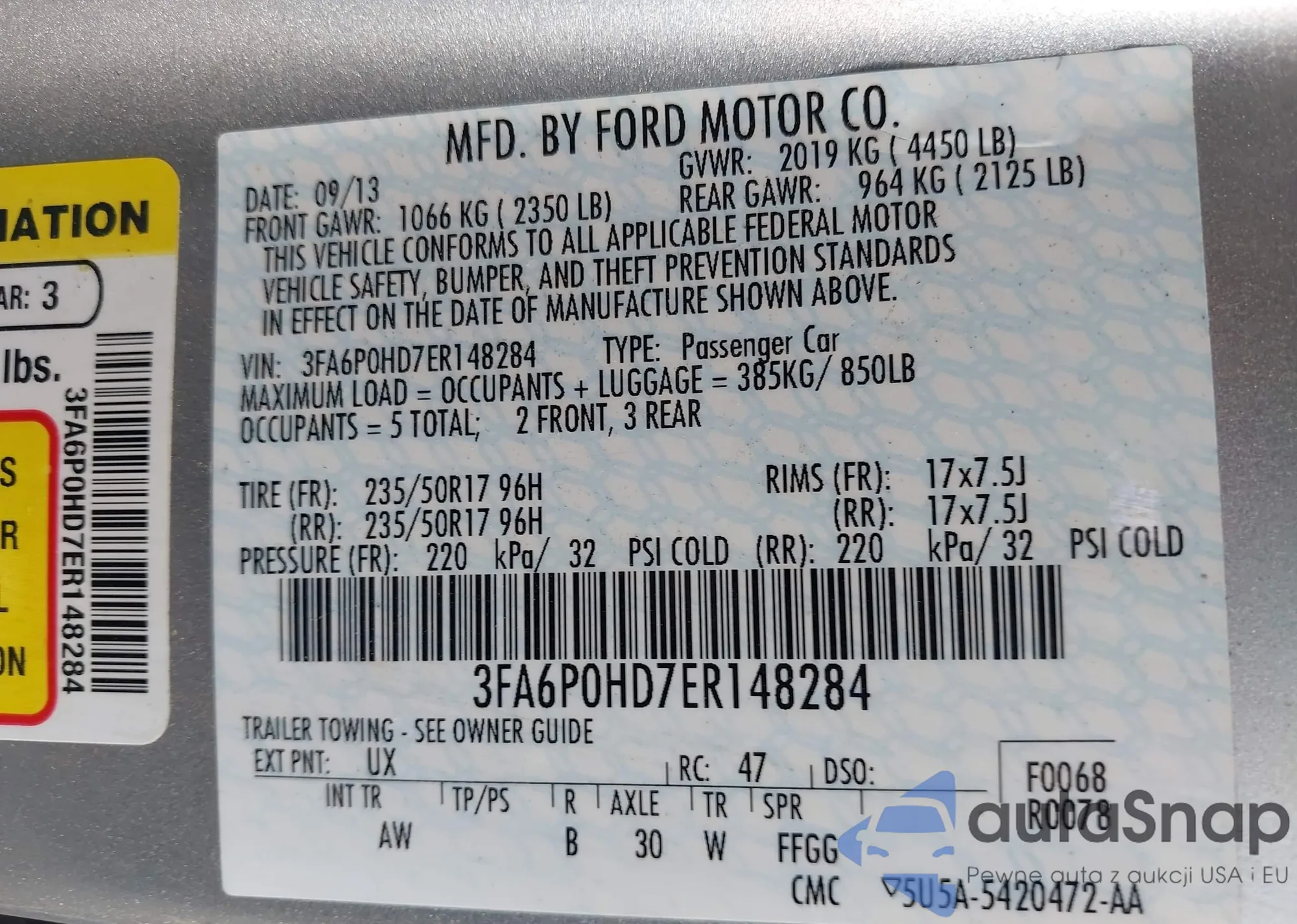 VIN: 3FA6P0HD7ER148284