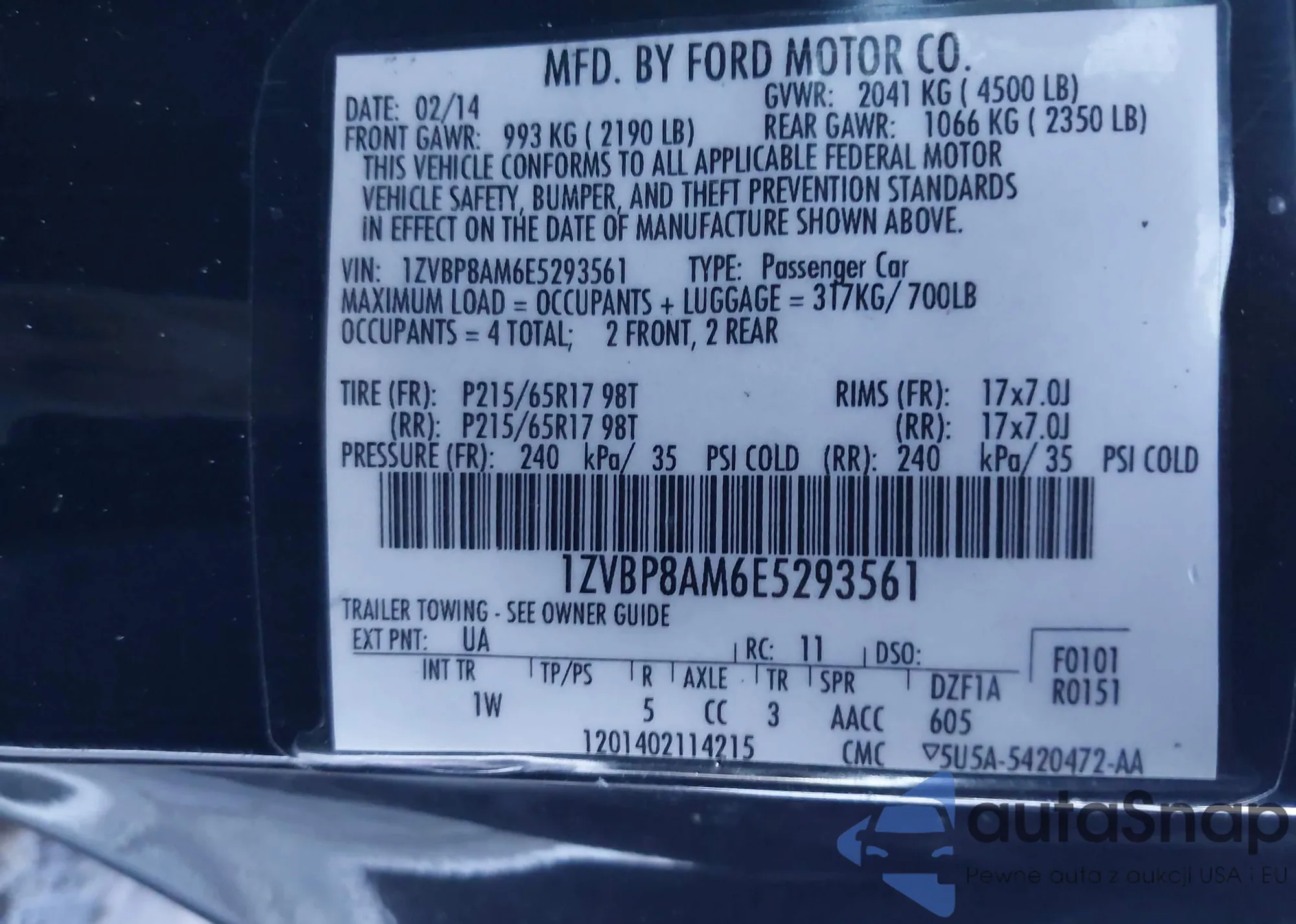 Samochód Ford Mustang 2014 (VIN 1ZVBP8AM6E5293561) nie był wcześniej licytowany. Dokumenty są czyste, przebieg odpowiada lub jest niższy niż średnia rynku. Sprzedaje go firma ubezpieczeniowa – polecamy zakup. Dostawa do portu zajmie ok. 6–8 tygodni.