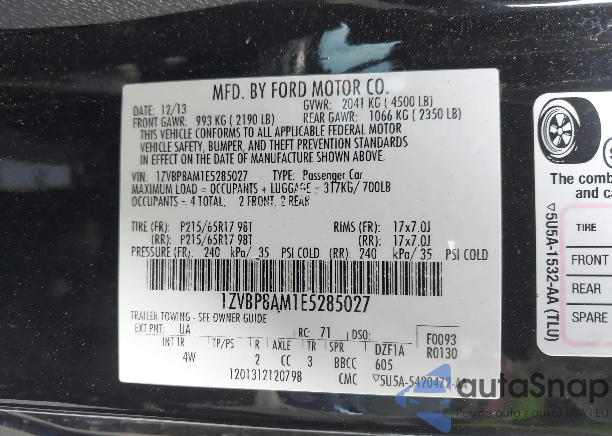 VIN: 1ZVBP8AM1E5285027