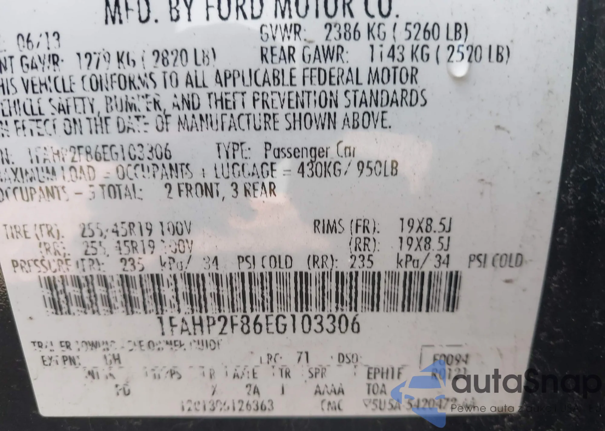 VIN: 1FAHP2F86EG103306