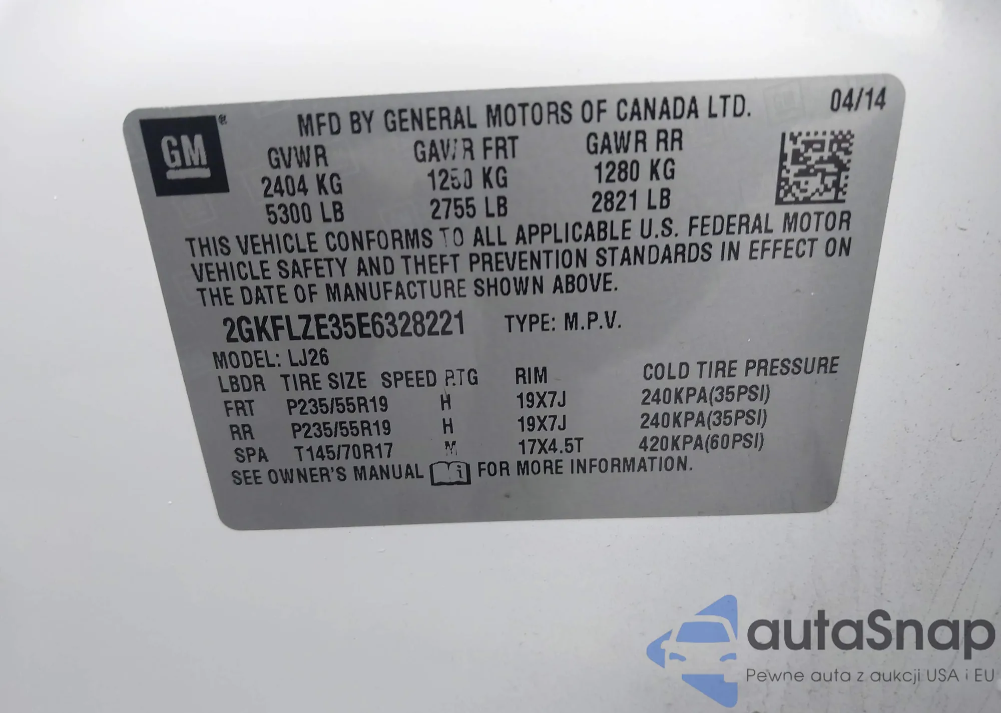 VIN: 2GKFLZE35E6328221