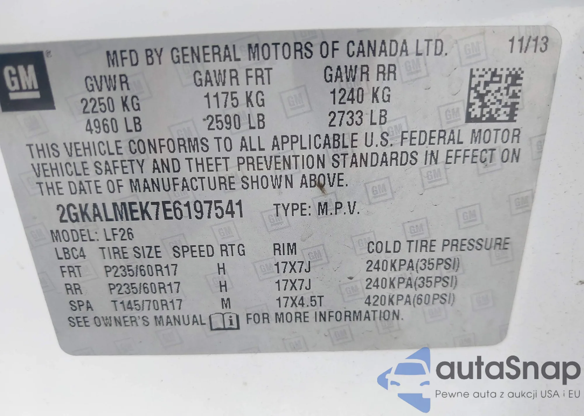VIN: 2GKALMEK7E6197541