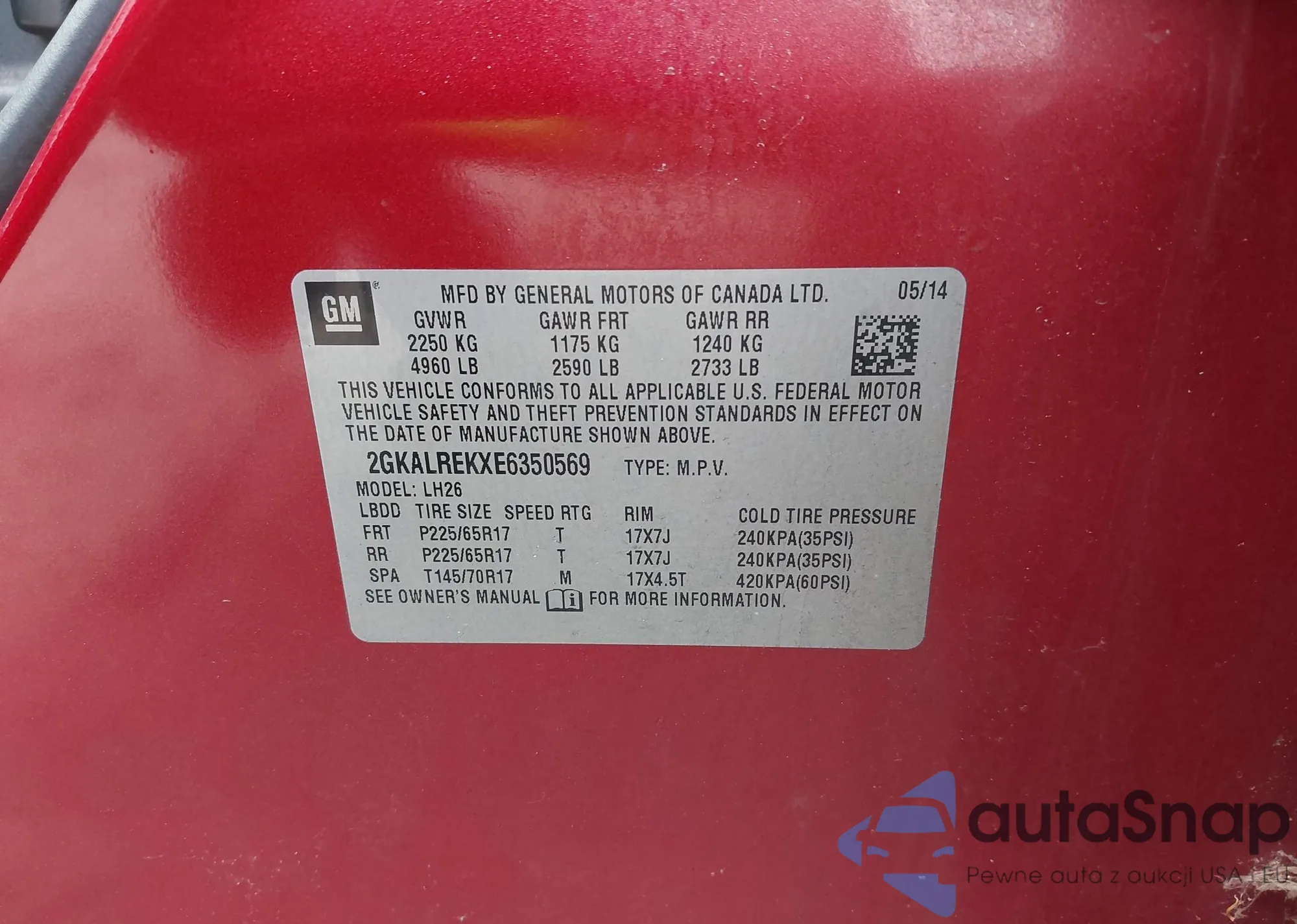 VIN: 2GKALREKXE6350569