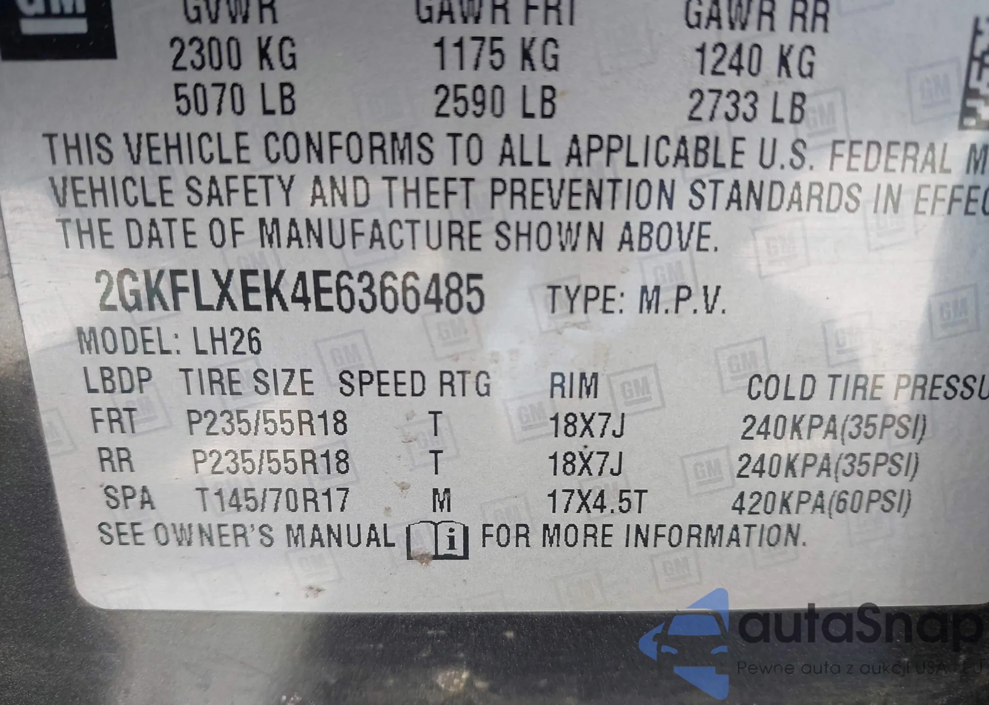 VIN: 2GKFLXEK4E6366485
