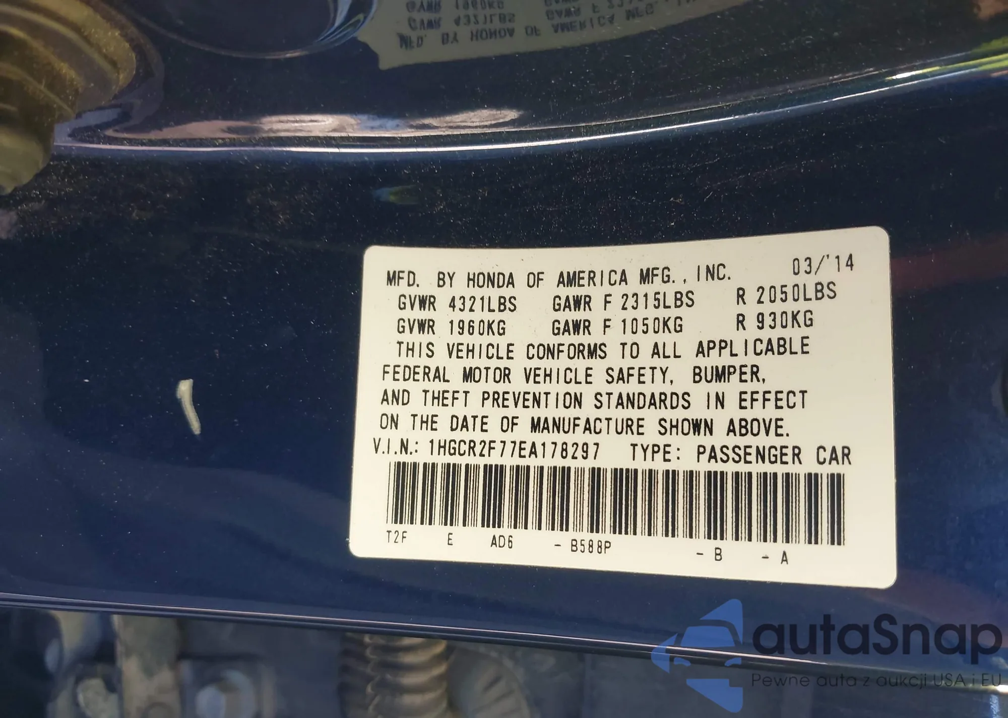 VIN: 1HGCR2F77EA178297