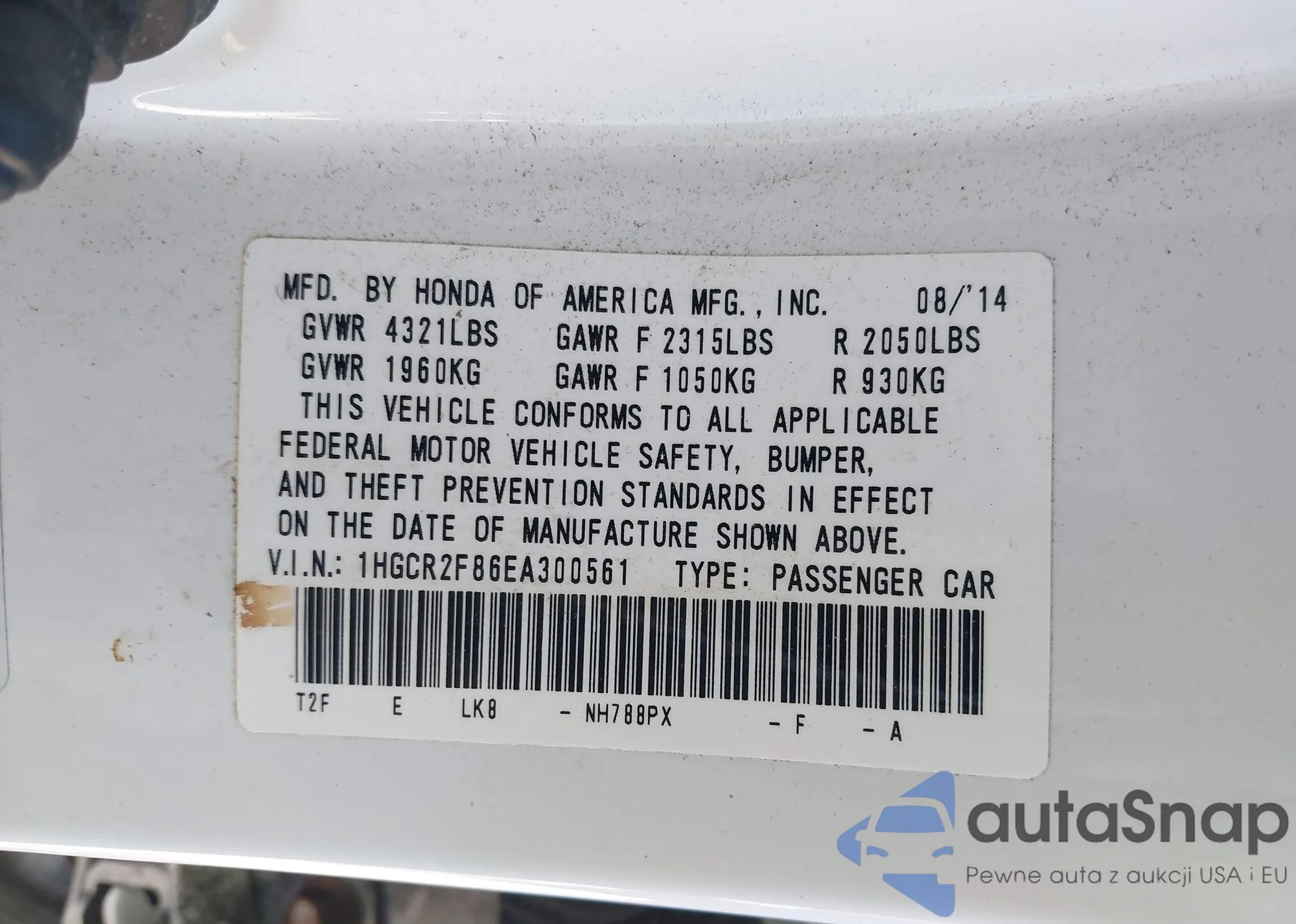 VIN: 1HGCR2F86EA300561