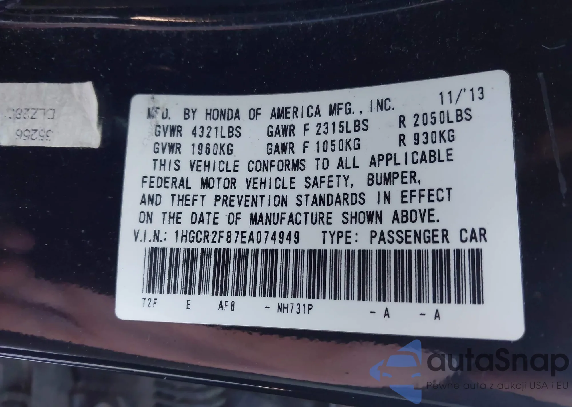 • VIN: 1HGCR2F87EA074949