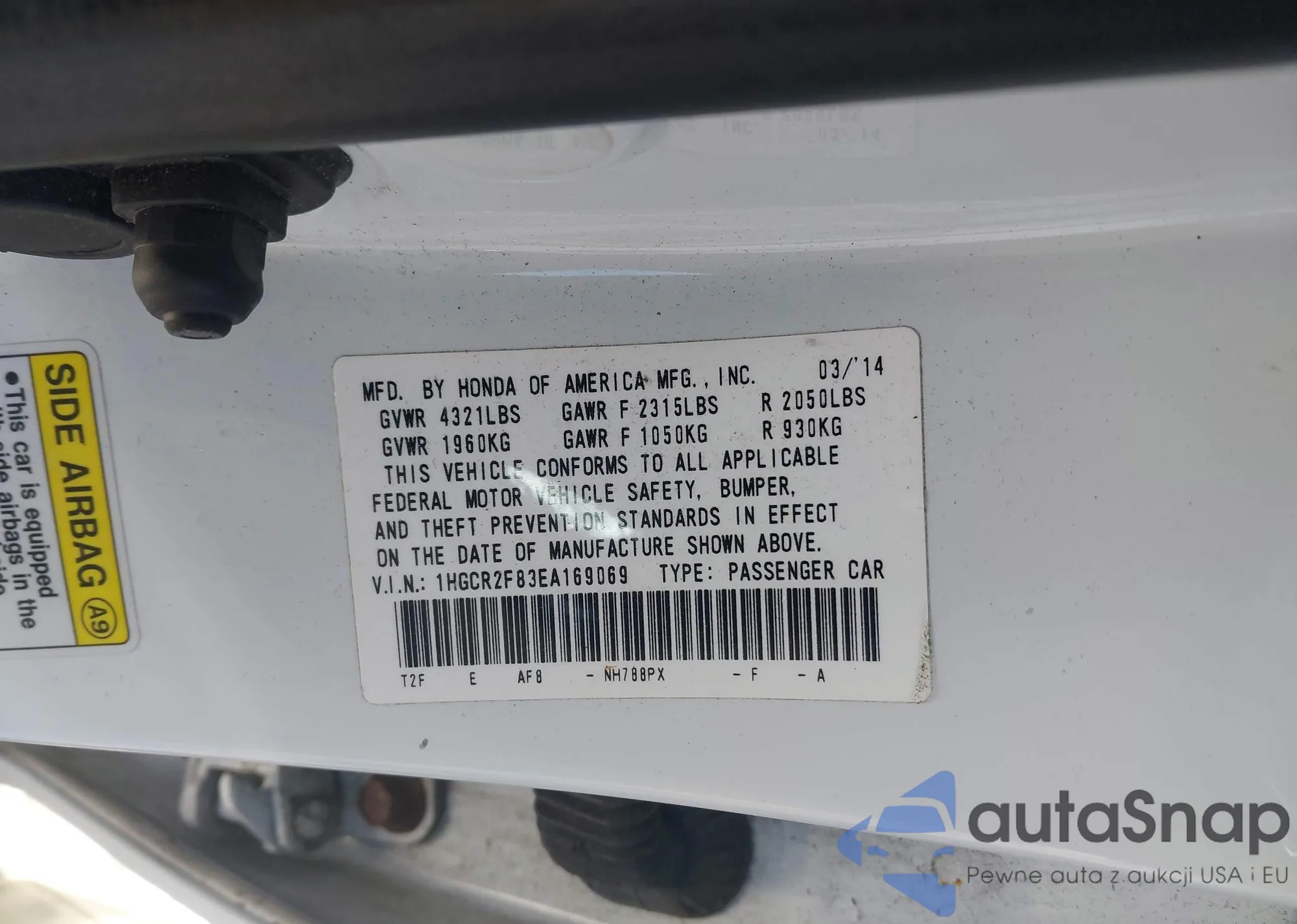 VIN: 1HGCR2F83EA169069