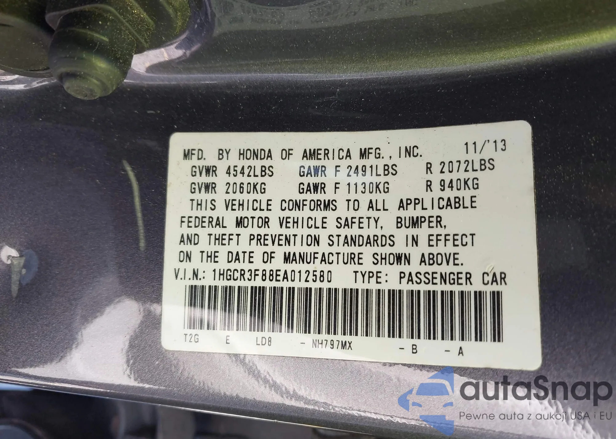 VIN: 1HGCR3F88EA012580