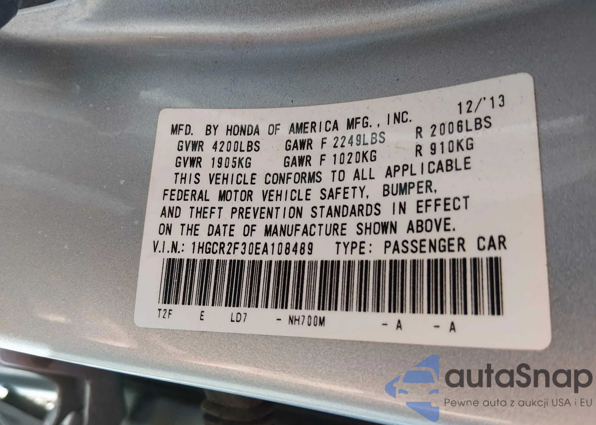 VIN: 1HGCR2F30EA108489