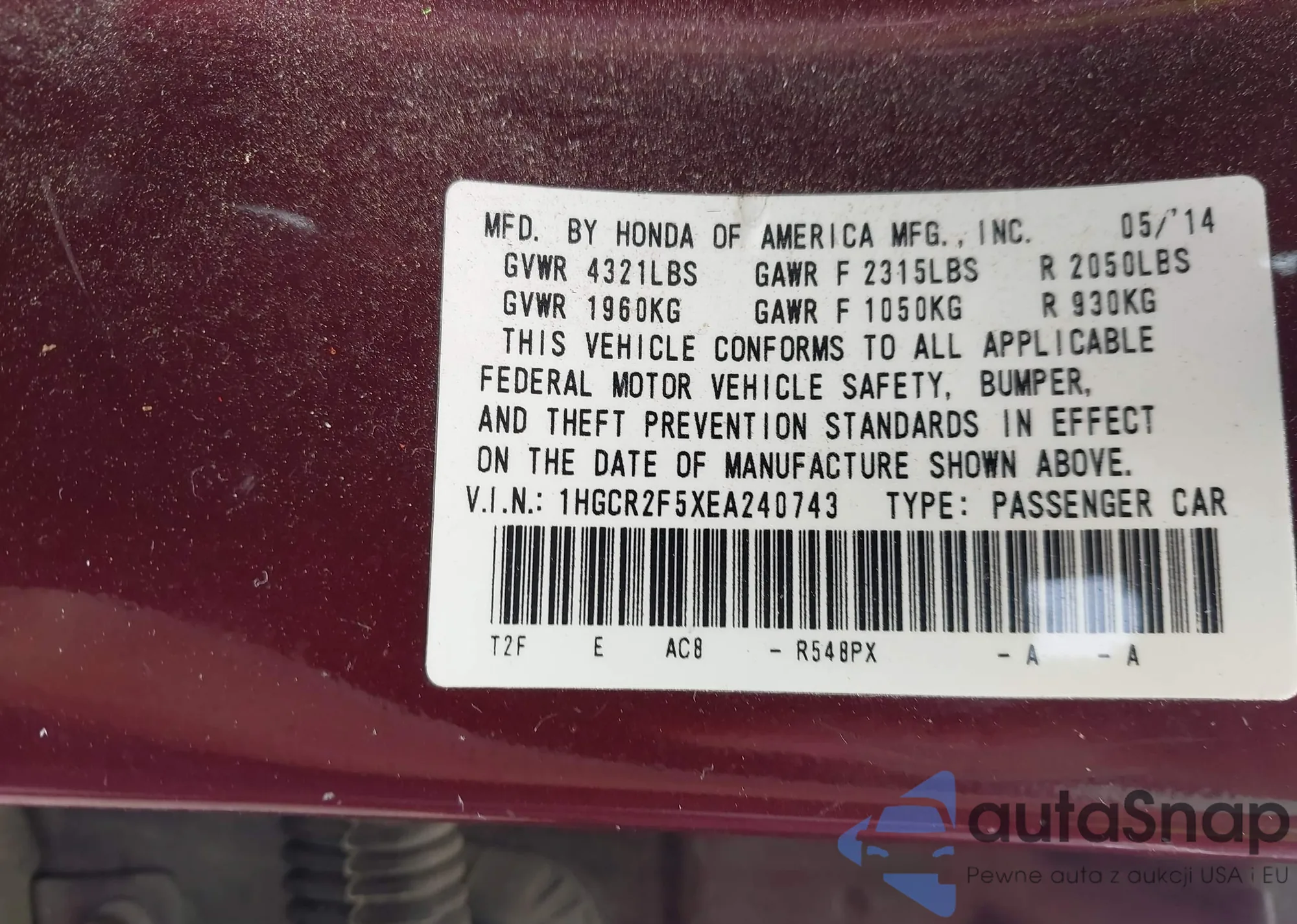 VIN: 1HGCR2F5XEA240743