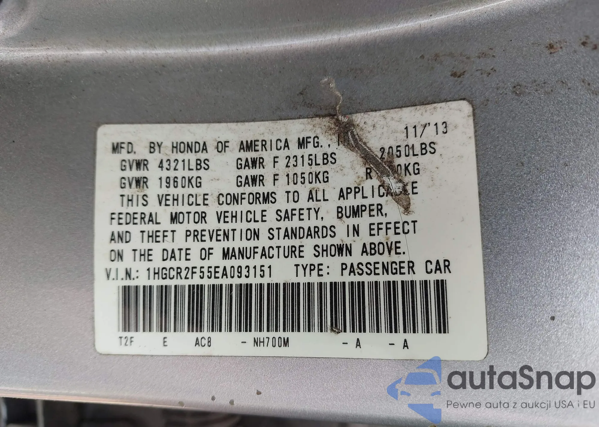 VIN: 1HGCR2F55EA093151