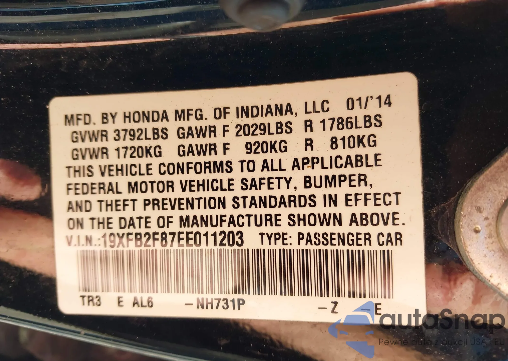 VIN: 19XFB2F87EE011203