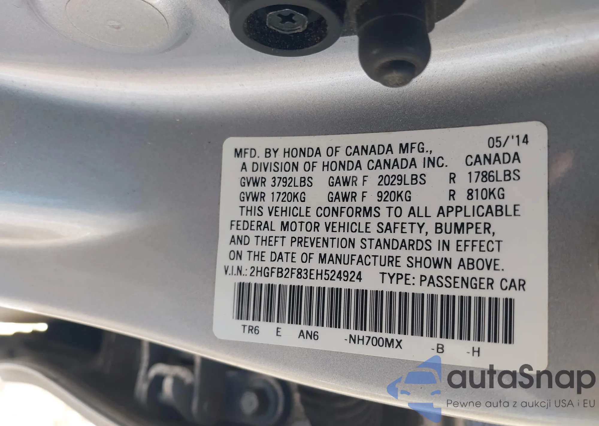 VIN: 2HGFB2F83EH524924