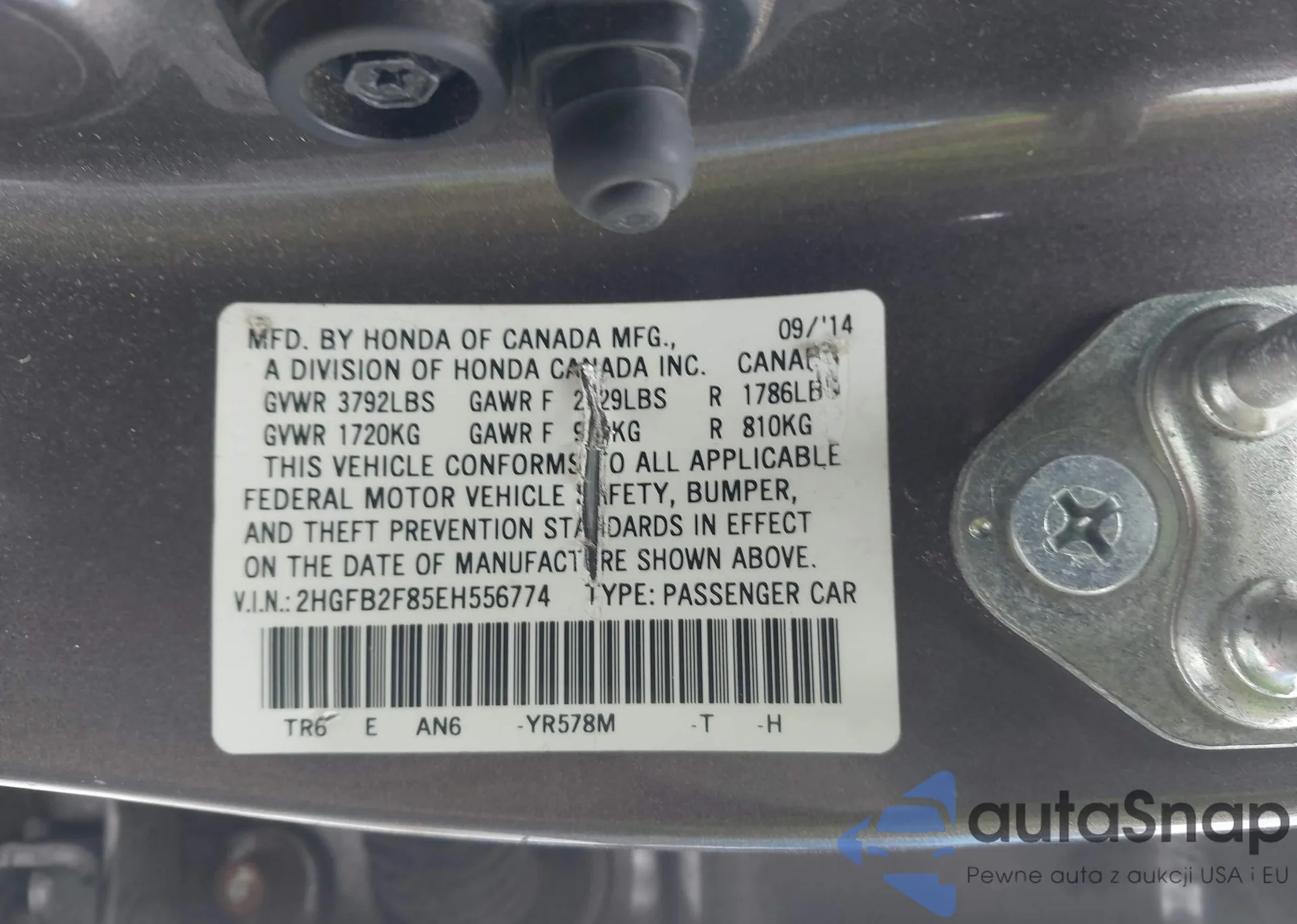 VIN: 2HGFB2F85EH556774