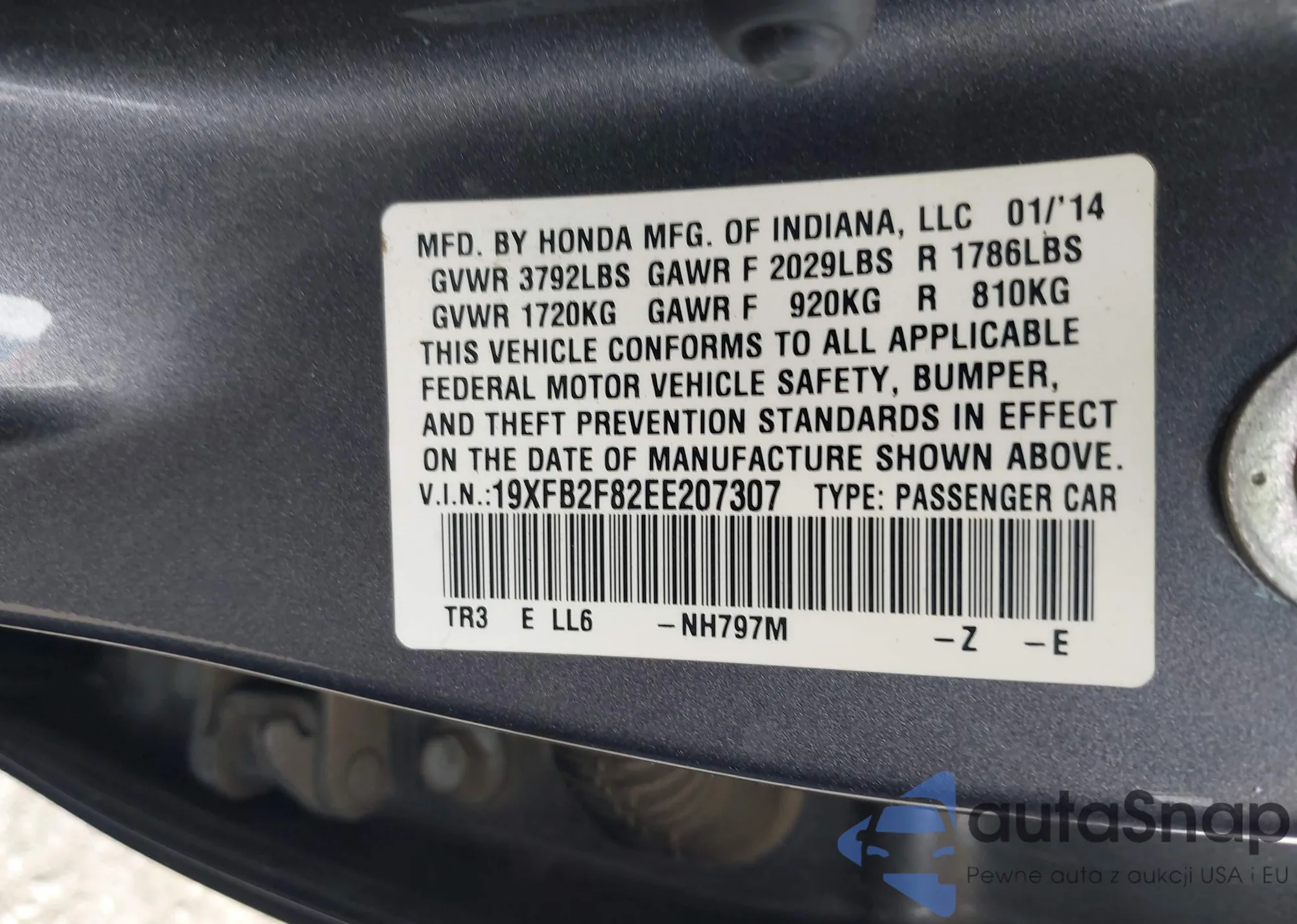 • VIN: 19XFB2F82EE207307