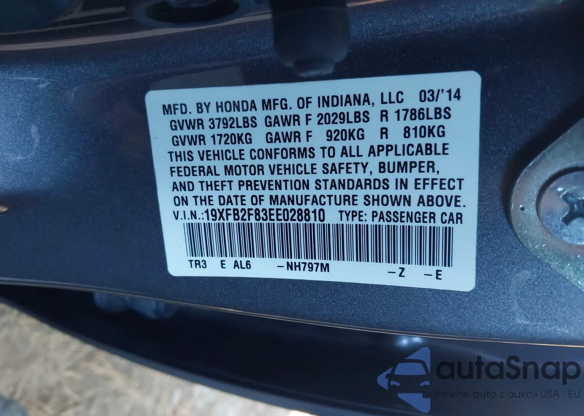 VIN: 19XFB2F83EE028810