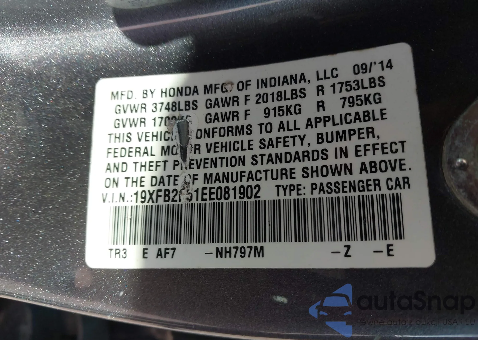 Samochód Honda Civic 2014 (VIN 19XFB2F51EE081902) nie był wcześniej licytowany. Dokumenty są czyste, przebieg odpowiada lub jest niższy niż średnia rynku. Sprzedaje go firma ubezpieczeniowa – polecamy zakup. Dostawa do portu zajmie ok. 6–8 tygodni.