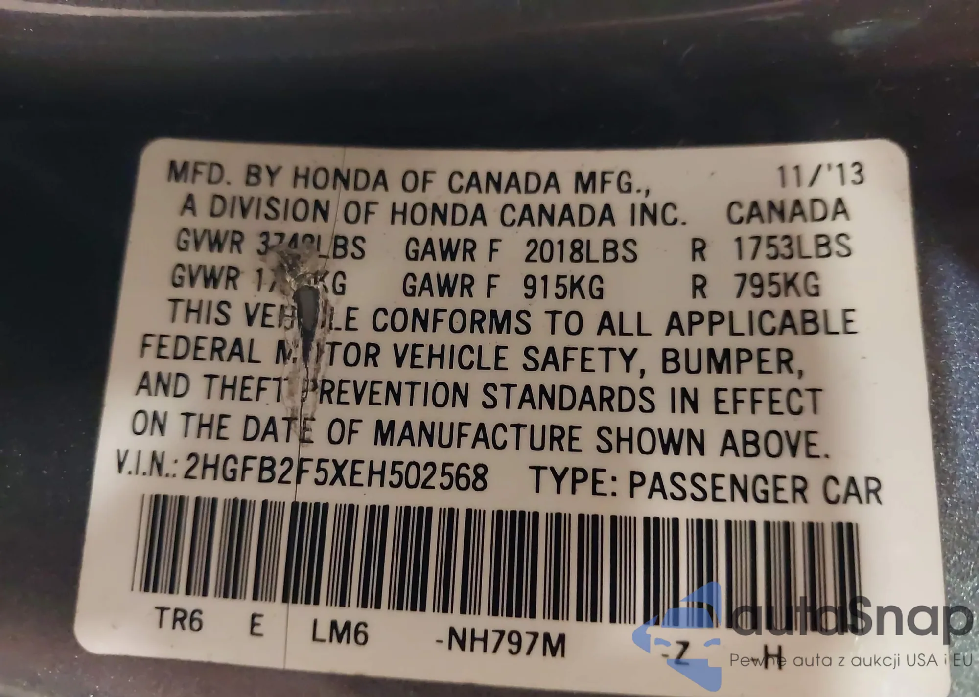 VIN: 2HGFB2F5XEH502568